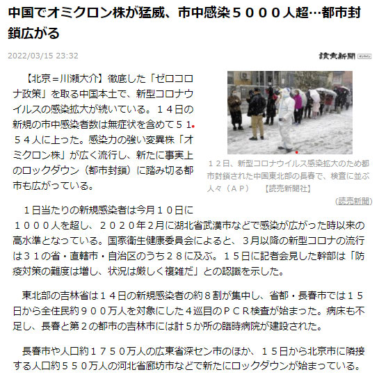 ホーム » 新型コロナウイルスに関連する情報 » 2022年3月15日読売新聞掲載 2022年3月18日 中国における新型コロナウイルスの発生に関する影響:2022年3月15日読売新聞掲載 2022年3月18日 2022/3/18 RECENT POST 中国ロックダウン解除のご報告 2022年11月21日 中国ロックダウン状況のご報告 2022年11月14日 中国ロックダウン状況のご報告 2022年11月9日 中国でのロックダウン解除・工場稼働のご報告 2022年6月6日 中国でのロックダウン実施による影響について 2022年6月2日